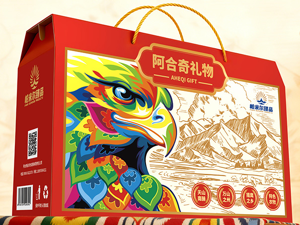 高端大气新疆特色撞色民族风情插画礼盒设计